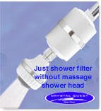 - This KDF Shower Filter will typically last 3,000 gallons or one year whichever comes first. The shower filter contains KDF 55 granules, which are most effective in removing or reducing chlorine, hydrogen sulfide, microorganisms, scale and water-soluble heavy metals such as lead, mercury, and iron. KDF process media also kill bacteria and inhibit the growth of bacteria, algae, and fungi.