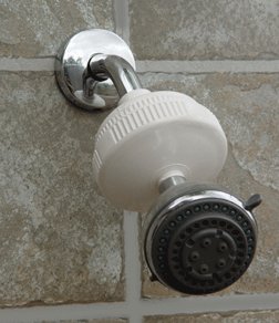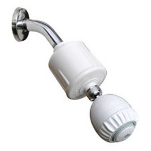 The Rainshow'r Chlorine Shower Filter with Massage Shower Head (RS-502-MS) reduces chlorine and other contaminants in your shower water. This dechlorinating water filter is an inline shower water filter that is compatible with all standard 1/2 thread shower arms. It includes one Amcor massage shower head. The Rainshow'r RS-502-MS is easy to install (no tools required). This Rainshow'r Inline Chlorine Shower Filter with Amcor Massage Shower Head removes 90% of free chlorine. Recent studies have shown that chlorine in shower water is a major health concern. People absorb more chlorine in the shower than they do when drinking chlorinated water. Excess chlorine in your shower water can cause dry and irritated skin, acne, hair dryness and damage, as well as other health problems in many people. The use of this inline shower water filter will leave your skin and hair feeling softer and cleaner due to its removal of excess chlorine as it helps to protect you and your family from the dangers